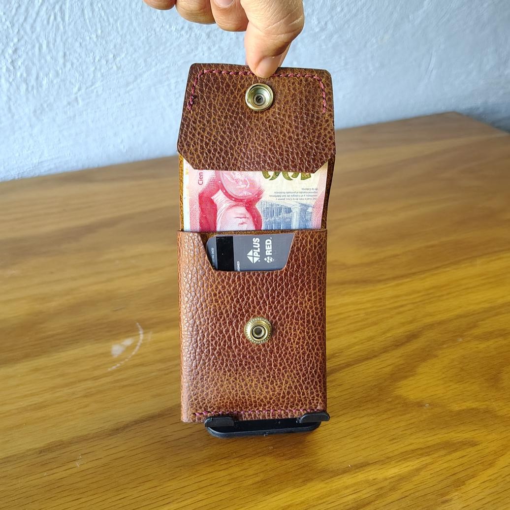 Elaborada en cuero auténtico vacuno, Jano combina una estructura sólida con un diseño limpio y atemporal. Sus dimensiones permiten llevar tarjetas y billetes doblados de forma ordenada, manteniendo un perfil discreto que se adapta fácilmente a cualquier bolsillo o bolso.