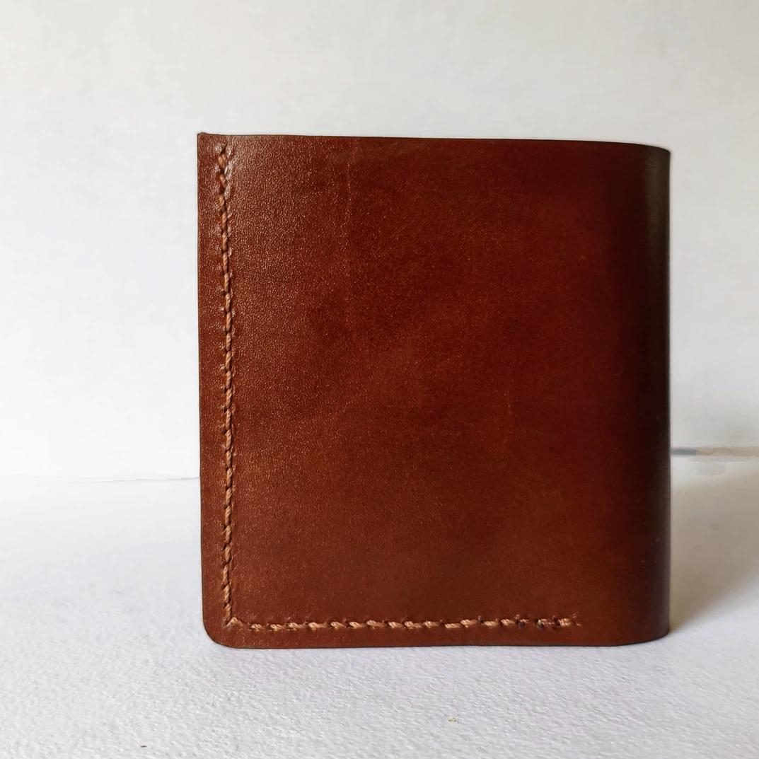 Fabricada en cuero auténtico vacuno, su forma simétrica de 10 x 12 cm desafía el estándar con estilo. Cuenta con compartimentos para tarjetas y billetes.